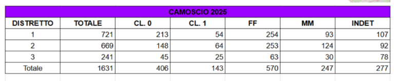 I risultati ottenuti nei censimenti 2025 sono stati influenzati dalle condizioni meteorologiche caratterizzate da temperature improvvisamente molto elevate che hanno condizionato la distribuzione dei camosci e quindi il loro avvistamento. Rispetto agli scorsi anni, infatti, gli animali si trovano a quote più elevate, in versanti meno esposti o in aree boscate a più basse quote.